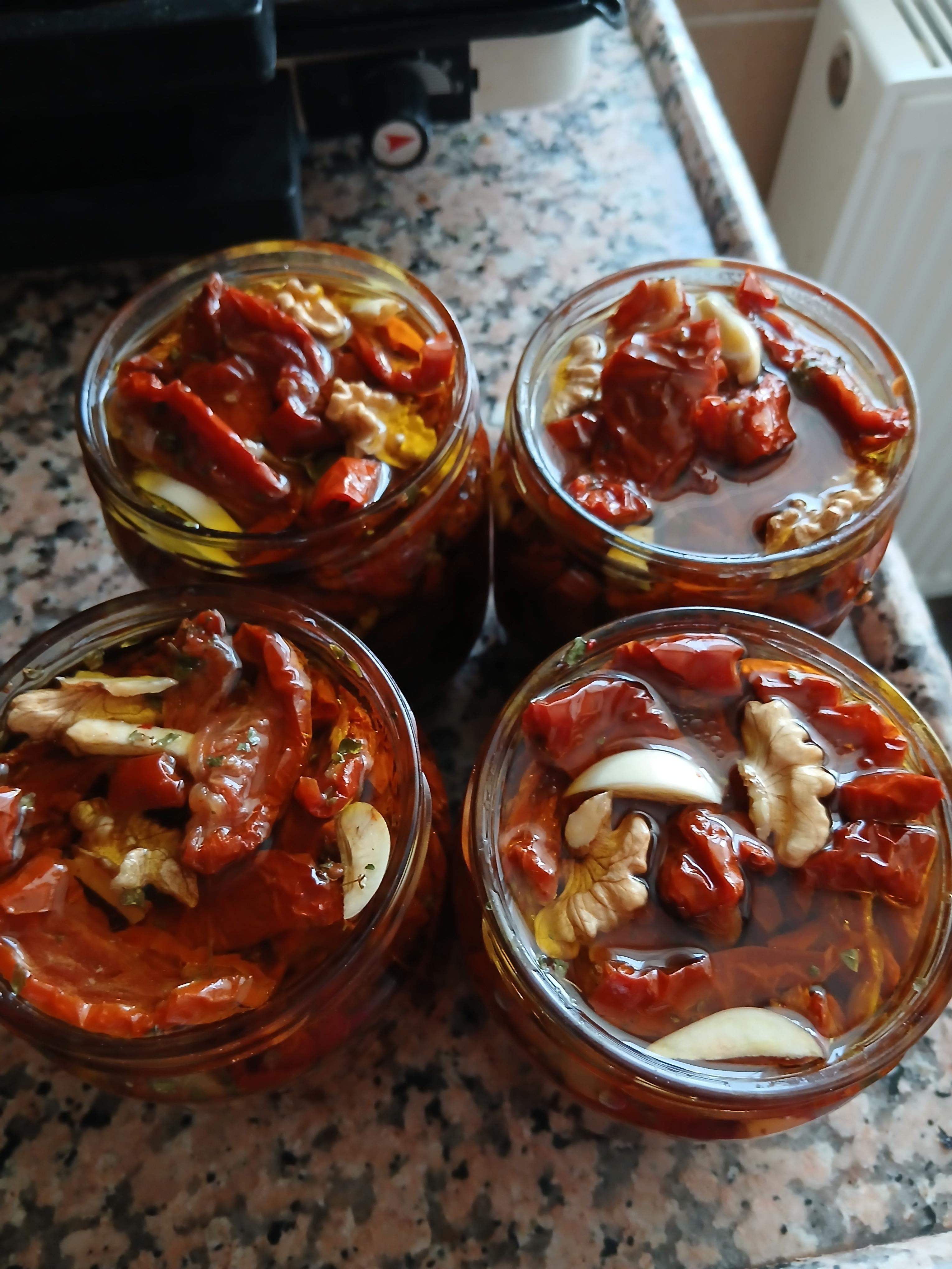 Bol kekikli cevizli ve tabi ki de Aydın Nazilli nin meşhur doğal zeytinyağıyla harmanlanmış domates kurusu